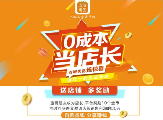 而且现在加入,正赶上百城优品改版契机,全新推出全新福利和分销激励机制:购买广西海鸭蛋或是新疆和田大枣即可0成本当店长;享受店主福利的同时,邀请朋友开店可获得平台10个金币的奖励,并获得邀请店长销售利润的50%,实现与朋友共同获利,轻松赚钱。