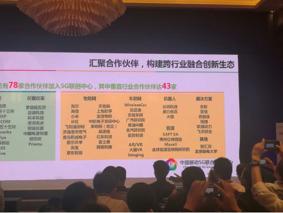 中国移动5G联创中心成立于2016年2月的世界移动通信大会GTI峰会上,旨在从4G向5G演进过程中,与合作伙伴共同打造联合创新、互利共赢的跨界融合新生态体系,关注领域包括基础通信能力、物联网、车联网、工业互联网、云端机器人以及虚拟/增强现实等,目前已经有包括43家垂直行业企业的78家合作伙伴加入。