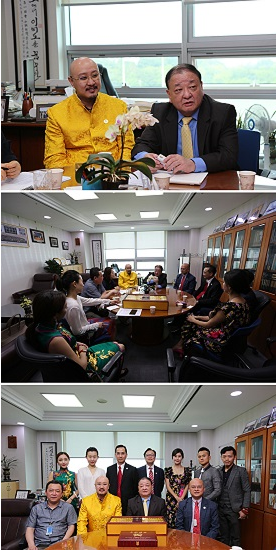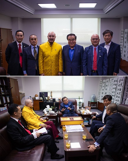 韩国国会韩日议员联盟会长、连续四届的国会议员姜昌一博士,与世贸总会访问团在韩国国会进行会晤。姜昌一会长表示与白玛奥色主席在10年前已认识是老朋友,对世贸总会的到访表示热烈欢迎,与白玛奥色主席在中韩民间外交、宗教交流等方面已有多年往来。并就中国、韩国、日本、蒙古国的民间外交事宜,进行了广泛的讨论交流,期望未来得以深入合作发展。