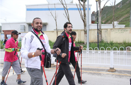 当天的比赛从玉树地震遗址感恩广场鸣枪出发,终点为市区格萨尔广场。20千米的赛道,见山见水见新城,海拔最高处达3900米。竞赛组近千名专业队员双手持徒步杖,迈着坚实的步伐奋力向前,体验组和当地参与群众人数高达5000人。行走,似风;驻足,风景。美丽新玉树的卓越雄姿让众多参赛队员纷纷点赞。比赛开始时,天空中云雾叆叇,正适宜开展徒步活动;首名队员抵达终点时,天空飘落小雨一洗参赛者风尘;颁奖时,天空放晴蓝天白云令人沉醉。