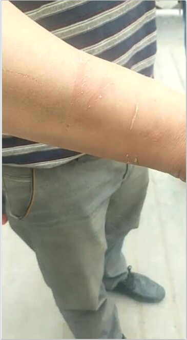 川中燃气公司安全员胳膊被手铐勒出的伤痕