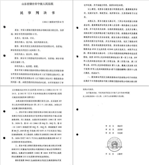 当年的8月6日,在烟台市福山区人民法院的一个会议室,在曹雨文的主持下,中简公司、工商银行以及作为愿意借钱给中简的山东烟台塔山企业集团股份有限公司(以下简称塔山集团),签订了一份《抵押借款合同》及补充协议。协议约定,塔山集团将其自有资金7000万元借给中简公司,年息20%,工商银行将中简公司贷款时抵押价值约为4700万元的欧尚花园抵押物转让给塔山集团。