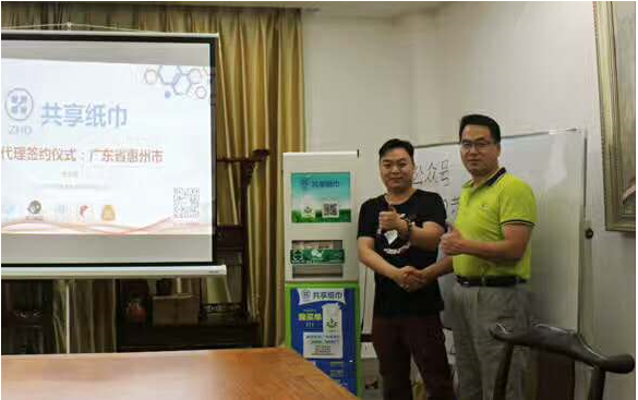 从商业关系出发,ZHO共享纸巾机也是一个不错的创业项目。“单单纸巾外包装广告收入和二维码吸粉收入,每出一包纸巾,净利润至少1元,一台纸巾机成本约1000多元,按目前情况,每天每台纸巾机出纸巾30包,这就意味着两个月之内就能回本,而且它还可以持续造血,这在‘大众创业、万众创新’的今天,这无疑是一个轻资产、零风险的项目,可以帮助更多的人圆梦。”郑品告诉记者,目前他们公司正在全国开展千城合伙人计划,已有江门、广州、深圳、惠州、郑州、苏州、重庆等城市的合伙人加盟。