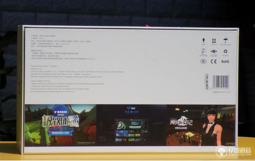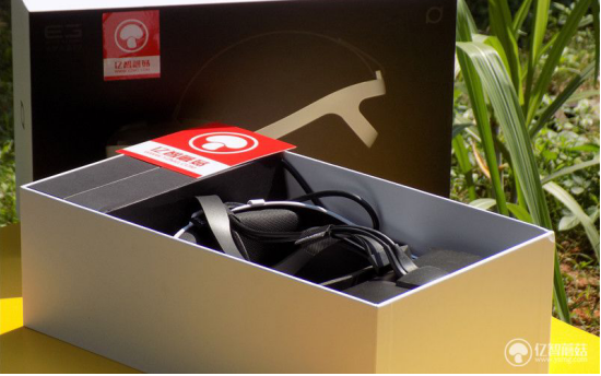 大朋E3整个包装盒颜色是黑白分明的格调,正面显得非常沉静、成熟庄重,黑色的底面印刷了产品的外观图,显得是那样的鲜明。包装盒的右上角印有产品的型号。而地盖有产品的名称、型号、规格、商家信息等等,分别有中英文的说明。