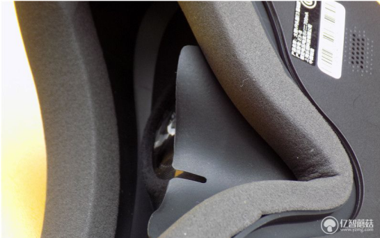 大朋E3贴合面部的位置设置了海绵边框,亲肤性、透气性不错,更容易脸型配合,让穿戴更加舒适轻松。海绵垫到镜片距离较大,其暗箱观看空间也较大,在头戴的鼻梁部分,加了一个特别设计橡胶皮,可遮住余晖,这样困扰VR产品的鼻子漏光问题终于彻底解决了。