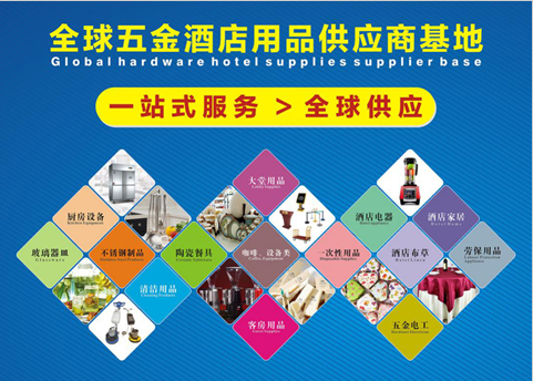 全面引进酒店用品13品类供应商(厨房设备、不锈钢制品、玻璃器皿、陶瓷餐具、清洁设备用品,咖啡设备、大堂用品、一次性用品、客房用品、酒店布草、酒店家居、劳保用品、酒店电器) 。云集国内外知名品牌,配套成熟全球物流商圈,尊享VIP一站式服务。