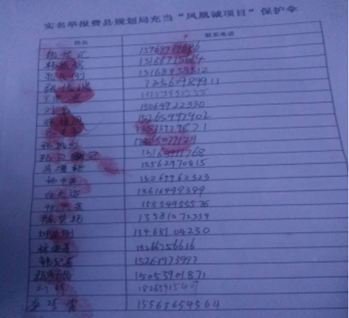 为此,毛巾厂4号家属楼的30位住户联合到“凤凰诚”18号楼施工现场找负责人进行协商。令人感到气愤的是,住户们跟开发商的协商不仅没有结果,反而有一位徐姓住户被开发商安排打手将手指打至骨折;开发商还公然违反建设施工安全方案,将一楼多位住户的配房在放炮施工时震裂。无奈之下,住户们联合到县政府和规划局去信访,并多次拨打12345市长热线和行风热线。