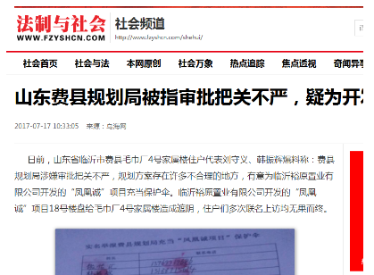 日前,山东省临沂市费县毛巾厂4号家属楼住户代表刘守义、韩振辉爆料称:费县规划局涉嫌审批把关不严,规划方案存在许多不合理的地方,有意为临沂裕原置业有限公司开发的“凤凰诚”项目充当保护伞。临沂裕原置业有限公司开发的“凤凰诚”项目18号楼盘给毛巾厂4号家属楼造成遮阴,住户们多次联名上访均无果而终。
