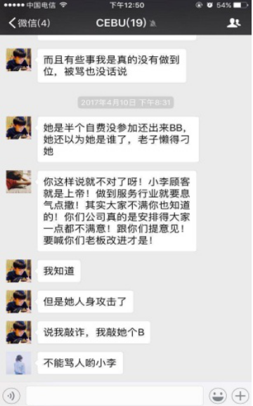 更为严重的是在部分团友并未签订自费协议的情况下,还遭遇了当地导游小李于行程第二天,在旅游大巴车上以恐吓威胁的方式强推自费项目(他说:3天自由活动期间不参加他安排自费项目,也不得参加当地其他任何形式的自费项目,否则将罚款10000比索,此事此话全团人可以作证),同时,小李也承认自己很多工作没有做到位,且后期这位小李态度更是恶劣,发生辱骂团友的人身攻击行为。更为不可理喻的是回程后,重庆万豪国际旅行社负责处理的投诉的人(电话:159227747**)给出的解释是:“所谓的自由活动,即使不参加导游组织的自费活动,也必须在酒店自由活动,不得离开酒店”,后期万豪国际旅行社领导梅总(电话:139839851**)已核实过此事,并给出的解释是工作人员业务不熟悉。另外,自费项目费用每项约900元不等,与市场价格每项300元左右相比明显过高,肖女士认为这已经与合同约定事实严重不符,涉嫌强买强卖,旅行社已经构成合同违约、欺诈。另外,团友至今都未收到当时参加自费项目时花钱租用的水下相机照片。
