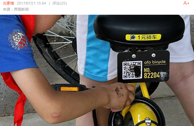 2017年3月26日,上海天潼路,一位11岁男孩在使用共享单车过程中与客车相撞,被卷入车底身亡。这是发生在上海的首例不满12岁未成年人使用共享单车致死案例。7月19日,死者父母将ofo连同肇事方诉至上海静安区人民法院,索赔878万元,并要求ofo立即收回所有机械密码锁具并更换为更安全的锁具。