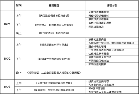 理论联系实战、快速入门投资课程,从投资思维、投资趋势、投资尽调、企业估值、法律范畴等多方面,结合投资实战演练、投资夜话答疑解惑,深度与投资人交流,快速转换投资思维。