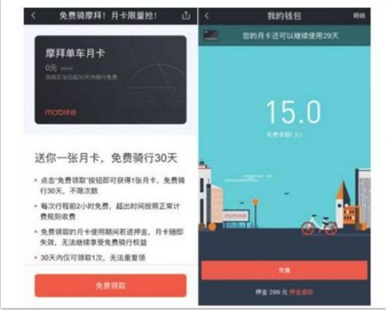 6月29日,摩拜单车曾宣布即日起免费送出1000万张月卡,在摩拜 App 或者小程序上领取这张月卡后,全国各地的摩拜用户均可在其后30天内免费骑行摩拜单车。然而,在用户的参与中,却多次出现免费活动期间扣费的状况。