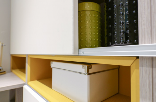 2.置物架内侧通过4块小板45°角吸塑拼接而成,13种吸塑色可选,点亮书房视觉效果,更具时尚气息。