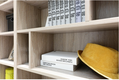 1.板材。由于书籍质量较大,诗尼曼书柜系列层板采用18mm板材,双侧板支撑,承重效果更佳。板材可选择禾香板或颗粒板,两种板材均为人造板,以原木颗粒或者植物秸秆为原材料,施加生态胶加工而成,具有防潮、耐用不变形、阻燃的特点,是新型环保板材。