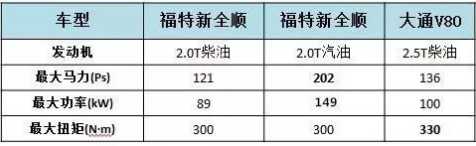 通过表格对比就能明显发现,新全顺的发动机虽然排量只有2.0升,但在动力参数上和V80 2.5升却相差不多,尤其是汽油发动机的最大马力和功率可秒杀大通V80。同时,更小的排量也意味着更低的油耗,而这对于精打细算的商用车消费者而言,显然也极为重要。