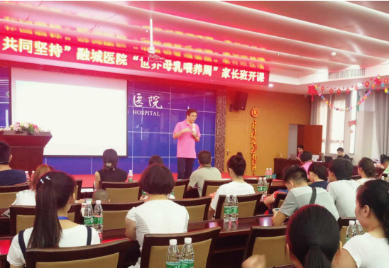 母乳喂养越来越被大众所接受与认可,母乳喂养对于宝宝和妈妈都是百利而无一害。然而,在母乳喂养的过程中也会出现无乳、少乳、乳汁淤积、乳房胀痛、乳腺管阻塞、急性乳腺炎等哺乳期一系列的症状。 8月1日-8月7日是世界母乳喂养日,由长沙南托卫计办与长沙融城医院主办,湖南金领玮业集团承办的倡导母乳喂养促进科学育儿催乳家长班启动仪式在长沙融城医院隆重举行。长沙南托街道卫计办办公室主任李海英,融城医院监事会主席陆安文,金领玮业董事长梁云出席本次活动并发表重要讲话。