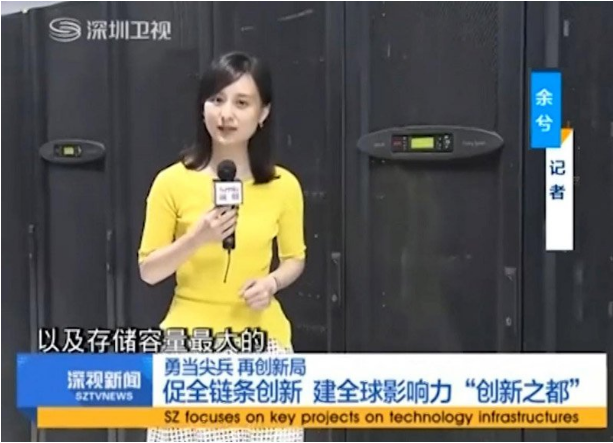 记者:大家现在看到的这一排排高大的“黑箱子”,就是深圳超算中心庞大的主机系统——曙光6000超级计算机。它是计算机中功能最强、运算速度最快、存储容量最大的超级计算机,运算能力相当于20万台个人电脑能力的总和,而其存储能力相当于80个国家图书馆的藏书量。目前,这个“超级大脑”已经覆盖了15个民生应用领域,服务人群超过1500万人。
