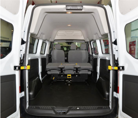 在装载力方面,福特新全顺拥有8.22立方米超大使用空间,后门踏板高度60厘米,侧门踏板高度50厘米,侧门开度90厘米,高度130厘米,侧滑门宽大的开口,提高了车内人员的乘降便利性,后门及侧门较低的门槛方便物品的装卸。除此之外,后悬架采用高刚性钢板弹簧形式,为车辆载货时提供强大的支撑力,配合高承载性轮胎与加强型侧梁,进一步提升了重载能力。
