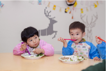 宝贝,因为早餐还没吃饱,所以到达园区后就向“老师”反应。“纽诺艾玛国际保育园的老师很棒哦,马上就准备了早餐给我补充。”郎朗回到家后,跟我说道。