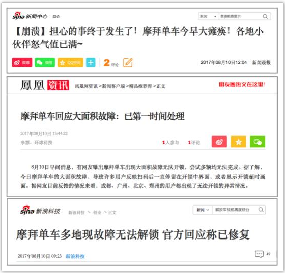 同时,据部分用户反映,此次宕机过程中,除扫码无法开锁问题外,系统收费出错等问题亦时有发生。综合看来,摩拜系统似为混乱状态。