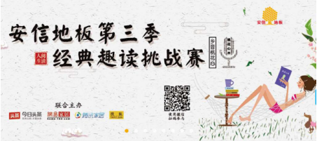 据了解,安信地板第三届趣读挑战活动总分两个环节。其中,第一个环节为活动的海选期,时间为8月5日到9月20日。该环节中,有兴趣读者可至安信地板门店参赛,也可以关注安信地板官方微信“anxinfloors1994”点击底部菜单“趣读大赛”参赛,或是通过安信地板官方网站的宣传海报扫码参与,该环节共将产生30名人气靠前的获奖读者。