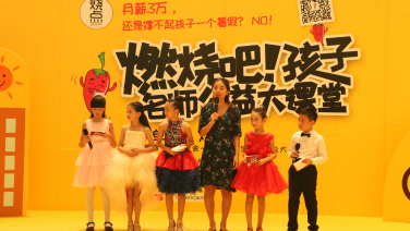 “燃烧吧!孩子,名师公益大课堂”在4个小主持人稚嫩的声音中开始啦!别看他们年龄小,他们可是专业的,也许十几年后我们就能在电视上看到他们主持节目的身影了。