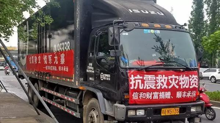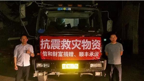 信和财富捐赠、顺丰承运救灾车