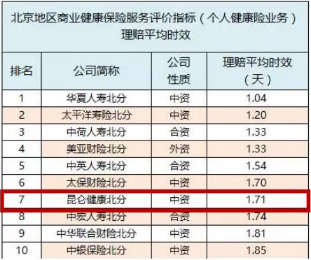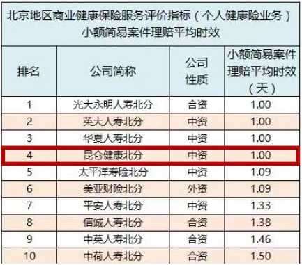 近日,北京保险行业协会首次向社会公众披露北京地区商业健康保险服务评价指标,该指标对多项保险服务做出了数据考查,其中包括出单时效、理赔时效、小额简易案件理赔时效等统计内容。昆仑健康保险股份有限公司(以下简称“昆仑健康保险”)的理赔平均时效与小额简易案件理赔平均时效分别位于榜单的第七名、第四名,在全部四十余家保险公司中名列前茅。
