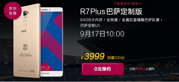 京东上线短短几天,限量500台的R7 Plus巴萨定制版就已经吸引了40多万人预约,平均800多人争夺一台手机。全球限量的5000台,也被狂热的粉丝迅速抢购一空。