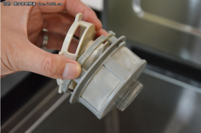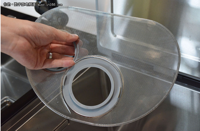 为了解决中式餐具形状多样、油污难清洗等问题,方太水槽洗碗机Q7的一些部件细节上就可以看得出精准的设计和匠心之作。比如我们可以看到喷淋臂上方的不同方位小孔,再如像玻璃一样光滑的过滤网板,再比如有着两个发明专利的小小渣篮。而内部腔体没有任何管路,且可拆卸,可想而知要到达这样的简单又承载复杂功能的内腔,有多困难。