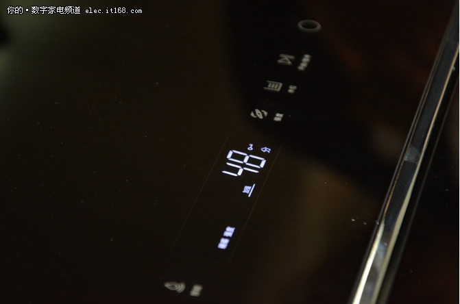 我们再来看看面板的细节部分,黑色镜面效果非常惊艳。同时在面板上还内置有触控式的操控按键以及显示屏幕,方便用户操作。