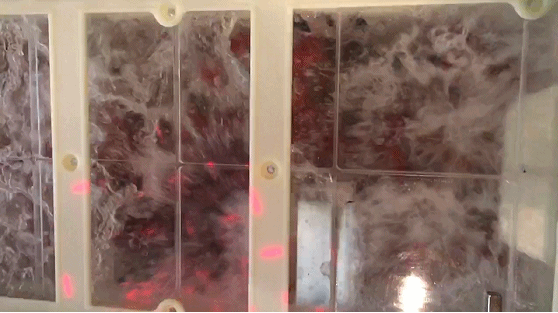 为了更好地了解果蔬清洗的工作过程,我们将前面板换成了一个透明的面板,这样就可以清晰地看到里面的喷淋效果,以及是否真的能够形成环幕式强劲瀑流,,确保腔体内所有水果蔬菜的表面附着的尘土都被清洗干净。
