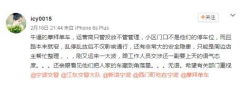 今年2月16日,一位宁波网友@icy0015在微博表示:亲眼看到牛逼的摩拜单车将其他的单车藏在角落里。