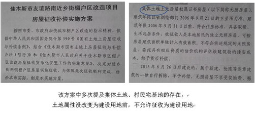 本网就指挥部提供的4份材料请教黑龙江省市相关职能部门,有以下几点质疑:1、《决定》和《方案》中说依据《国务院国有土地上房屋征收与补偿条例》,但文中又多次涉及到该征收范围有集体土地存在,集体土地性质没变更,是不能按国有土地征收方案征收拆迁的。2、《方案》《决定》中的征收部门为一个临时性的指挥部,没有具体的实际部门,不妥当,这个临时性指挥部依据什么成立的?是否有主体法律效力?公章又是依据什么刻制的?3、《公告》《决定》中实施日期为2015年10月10日,而无结束时间是不妥当的.涉及过期重新审批或部分内容修改等问题。4、作为很严肃的佳木斯市郊区政府《公告》竟然与国家行政法规相悖,如文中3个月内向人民法院提起诉讼与2015年5月1日颁发新的行政诉讼法6个月内向人民法院提起诉讼有明显冲突。