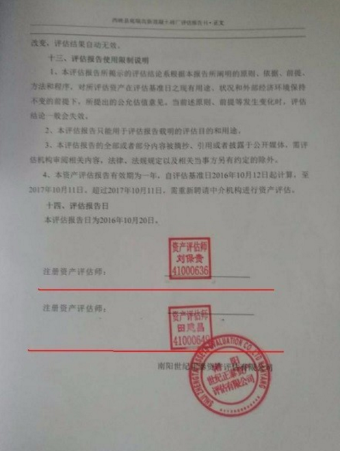 评估书因存在无评估人员签字等漏洞,2017年5月,西峡县检察院对该评估存在异议,发出评估异议通知书。随后,杨付林让相关人员做了补签。