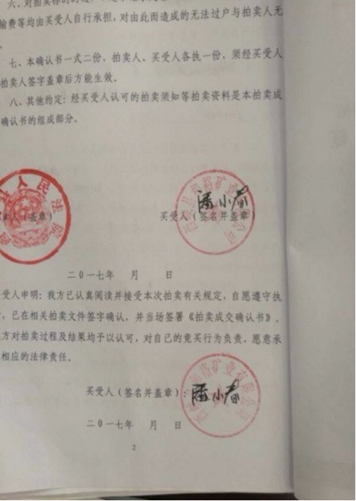 2016年5月,该宗土地被成功拍卖,张骥竞拍成功。但在实际交易时,是以潘小春为法人的和裕矿业有限公司。