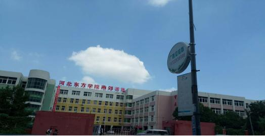 图解:校园悬挂着‘河北东方学院燕郊基地’的牌子