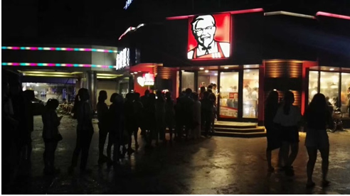 据了解,当晚20:00左右,珠海部分区域开始恢复供电,在供电区域内的9家肯德基餐厅紧急调拨人员与物资,为市民们提供餐点、手机充电等各种便民服务。在一片风雨和漆黑中,昨晚的肯德基餐厅灯火通明,成了市民们一个温暖的去处。