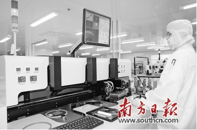 8月16日,经过一道指纹识别开启的安全门,透过玻璃窗一片繁忙的自动化生产景象呈现在人们的眼前,全身被置于防静电工服中的工人全神贯注监控着设备运行的状况,短短数秒,一个合格的光器件产品生产完毕,这里是广东瑞谷光网通信股份有限公司的自动化生产车间。