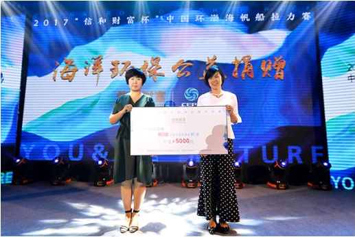在7月的环渤海帆船赛发布会上,“中华环境保护基金会-海洋环保基金”正式成立。作为该基金的第一个合作赛事,主办方在闭幕式上发起了“海洋环保公益捐赠”活动,赛事首席冠名商信和财富向中华环境保护基金会捐赠了爱品选100万积分。据主办方透露,捐赠的物品将在赛后进行义卖,义卖所得善款将全部捐赠至“中华环境保护基金会-海洋环保基金”。