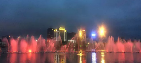 �8月底,赤壁市龙佑温泉举办水幕光影秀。