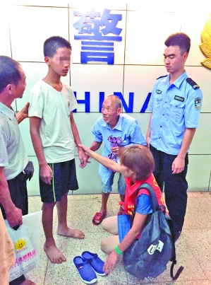 高州市15岁男孩阿峰“失联”16天,终于在东莞莞城被找到。前晚,阿峰69岁的父亲张煜和见到儿子时禁不住落泪,老人紧握莞城区北隅派出所教导员刘振形的手说:“谢谢你们,帮我找回了日思夜想的儿子!”