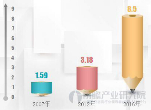 随着我国居民消费能力的不断提升,对于咖啡的消费能力也在不断增强,咖啡厅数量也呈现出几何增长的趋势。根据前瞻产业研究院的统计,2007年时,国内咖啡厅数量不足1.6万家,到了2016年,咖啡厅数量一度超过10万家,不过全年行业不断洗牌,截至2016年底的咖啡厅数量定格在8.5万家左右。
