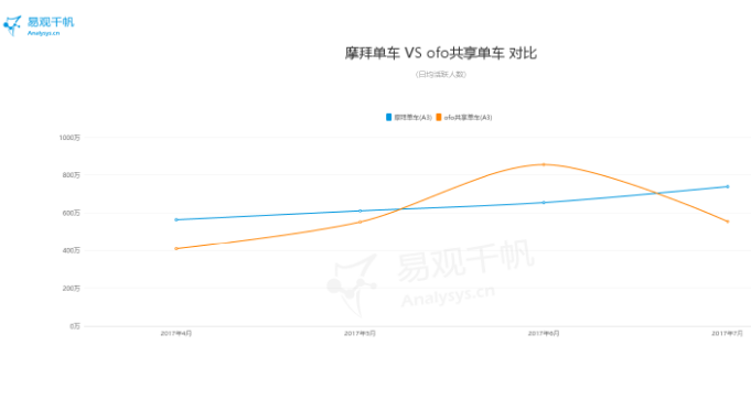 近日,国内权威第三方数据机构易观千帆发布数据报告,报告显示在活跃用户量、APP使用时长和APP启动次数等核心数据方面,摩拜7月表现领先ofo小黄车,坐稳行业之首。