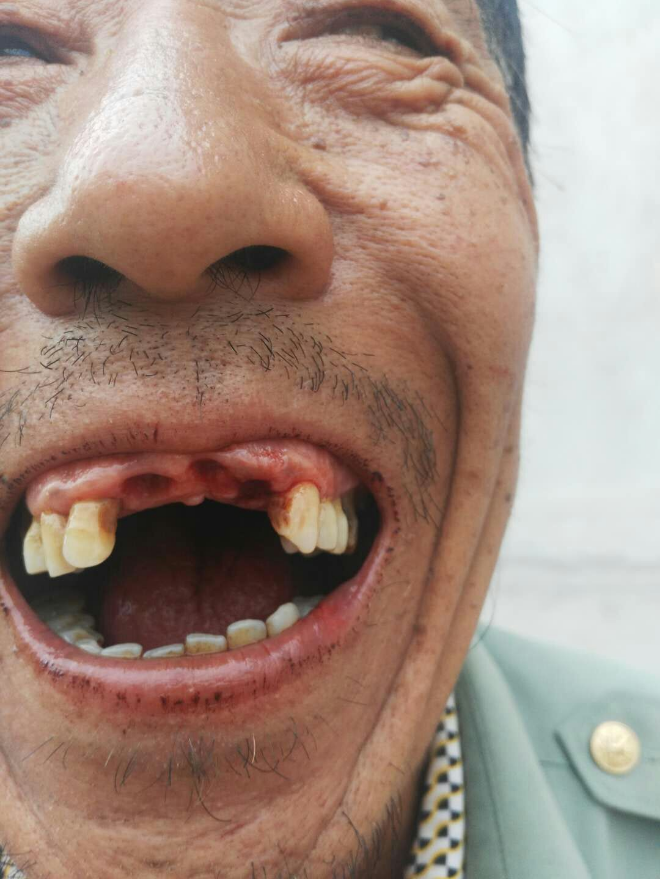 然而在7月27日,我来到自家玉米地里拍摄枯死的玉米和核桃树,何万友说:“你赶快走把,让春生看到会揍你的”。我没有理会,走到砖厂时,遇到了刘春生,让我站住,我当时没有吭气,开着电动三轮车回到了村里。不一会砖厂老板何万友给我打电话说,刘春生找我解决问题,我在回家的路上,被刘某、何某、谢某、杨某四人拦住围殴,三颗前门牙被打掉,下牙松动满嘴鲜血。
