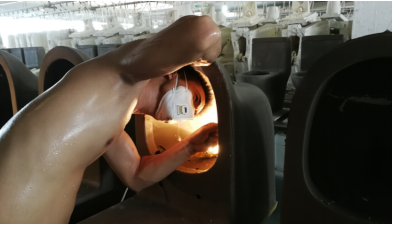 我们在工厂的允许下,拍摄了他们一组真实的照片。图片所示的是津上津上采用的是目前行业最高标准温度烧制--1280°,烧制出来的效果非常的好,密度高硬度高,洁白如玉一般。厂里的管理人员也反复督促小编要注意安全,温度着实是太高了,拍张照片热得全身都冒汗。