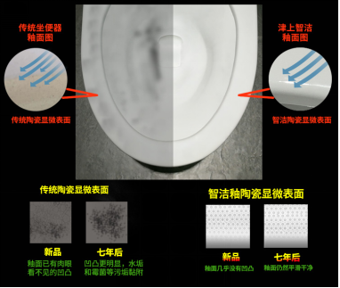 采用行业最新研发的陶瓷独家专用釉面,超越纳米尺度的超平滑表面的智洁釉面,可以使得污垢难以粘附,清洁更为轻松,营造持久洁净。