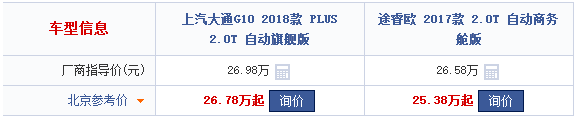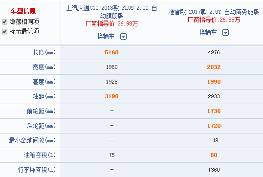 福特途睿欧自动商务舱版官方指导售价26.58万元,大通G10 PLUS 2.0T自动旗舰版官方指导售价26.98万元。而两款车最近都有成交优惠价,但是福特途睿欧自动商务舱版会更高一些。