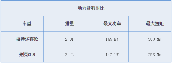 福特途睿欧的最大功率、扭矩分别为149kW、300Nm,而别克GL8的最大功率、扭矩分别为147kW、253Nm,动力上福特途睿欧相对来说优于别克GL8。值得一提的是,福特途睿欧搭载的发动机属于福特Eco-boost系列,已经多次斩获“沃德十佳发动机”的殊荣,动力这样强劲也不奇怪了。