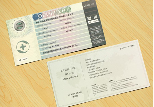 邀请函正面类似“签证”的设计露出了此次发布会的具体信息:8月31日在北京751D-PARK第一车间举办360手机夏季新品发布会暨360 OS 3.0发布;背面则是签证对应所在国家的美景大片,不仅充满了文艺气息,新奇有趣的创意设计更是让人眼前一亮。